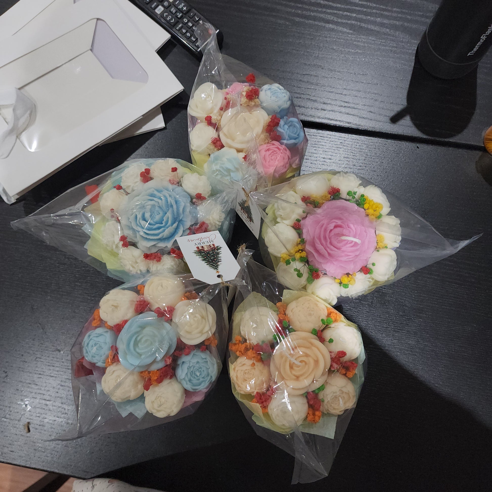 Hand-poured rose-shaped candles with intricate petal details